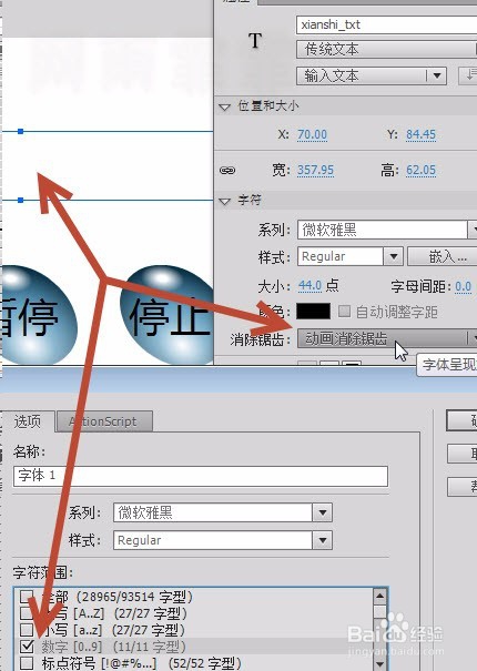 2、首先,需要将舞台上的动态文本的属性修改为 输入文本,只有这样,才可以实现输入的目的。