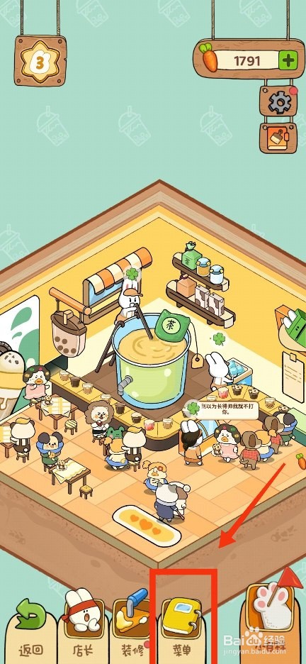 1、一、打开动物夜市,然后点击【菜单】图标。