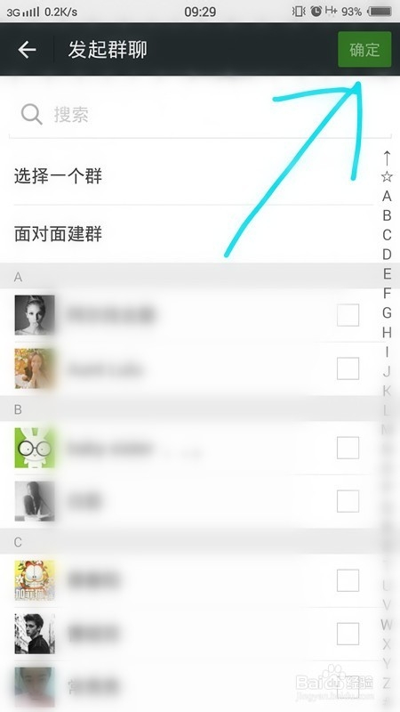 5、然后在通讯录中勾选想邀请加入群聊的朋友 最后点击确定即可