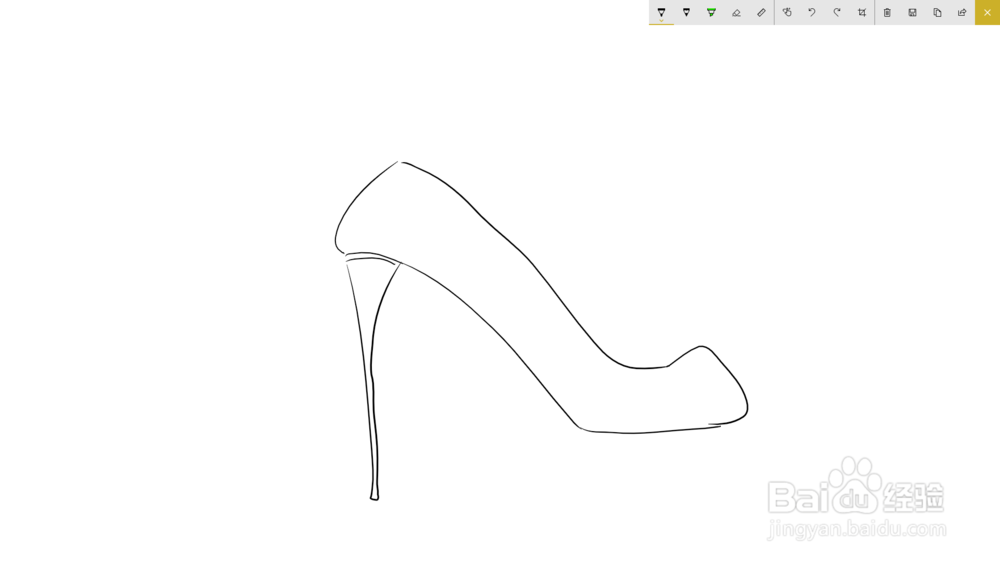 1、首先画出高跟鞋的线稿,由于我用的平板使用手指画的,线条画得不太溜,所以只能将就着看了,这里只展示步骤,画技请略过。