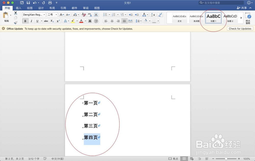 2、打入你要设置为目录的文字,然后一行行文字设置为标题一。不要一次性选择所有的目录文字,然后设置为标题一。要一行行选择,那么目录才会分开的。