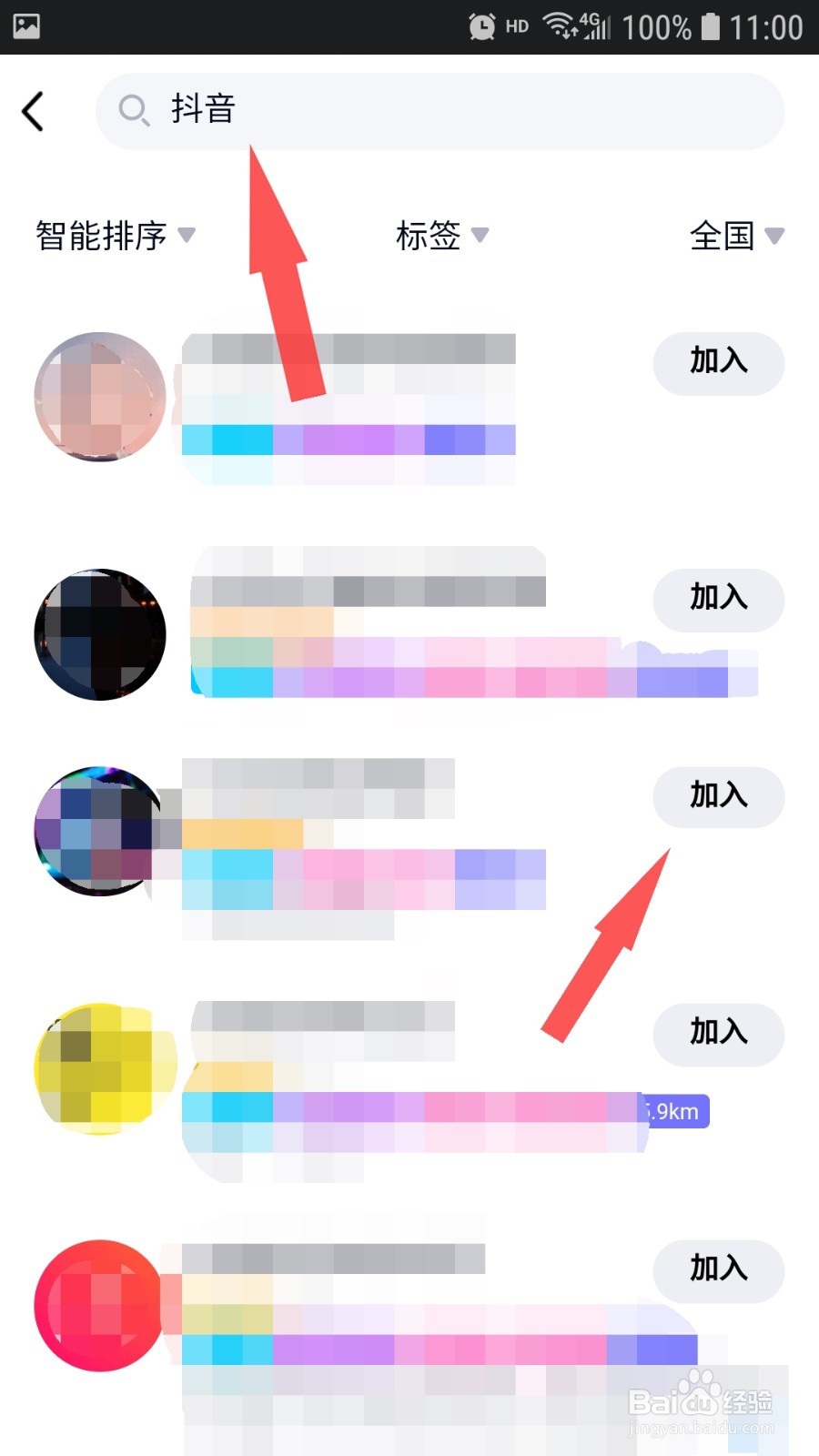 4、输入你想要加入的QQ群名称,比如说:抖音。点击后面的“加入”加入即可,为了避免群主拒绝,一次可以多点几个群加入,等群主验证通,就可以加入群聊。