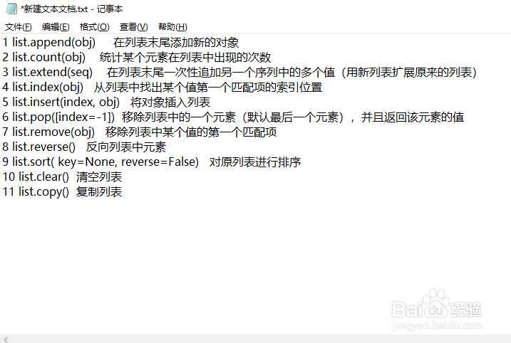 7、以下是列表常用的命令总结。