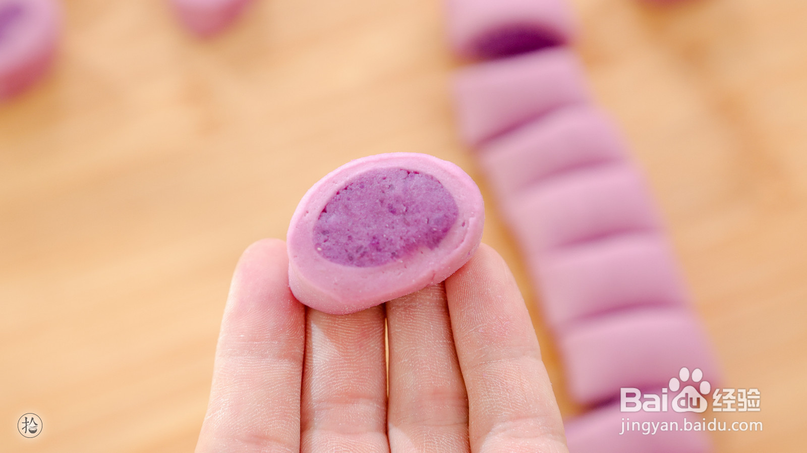 5、夹心:紫薯蒸熟后,加入牛奶压成泥,装入裱花袋备用。