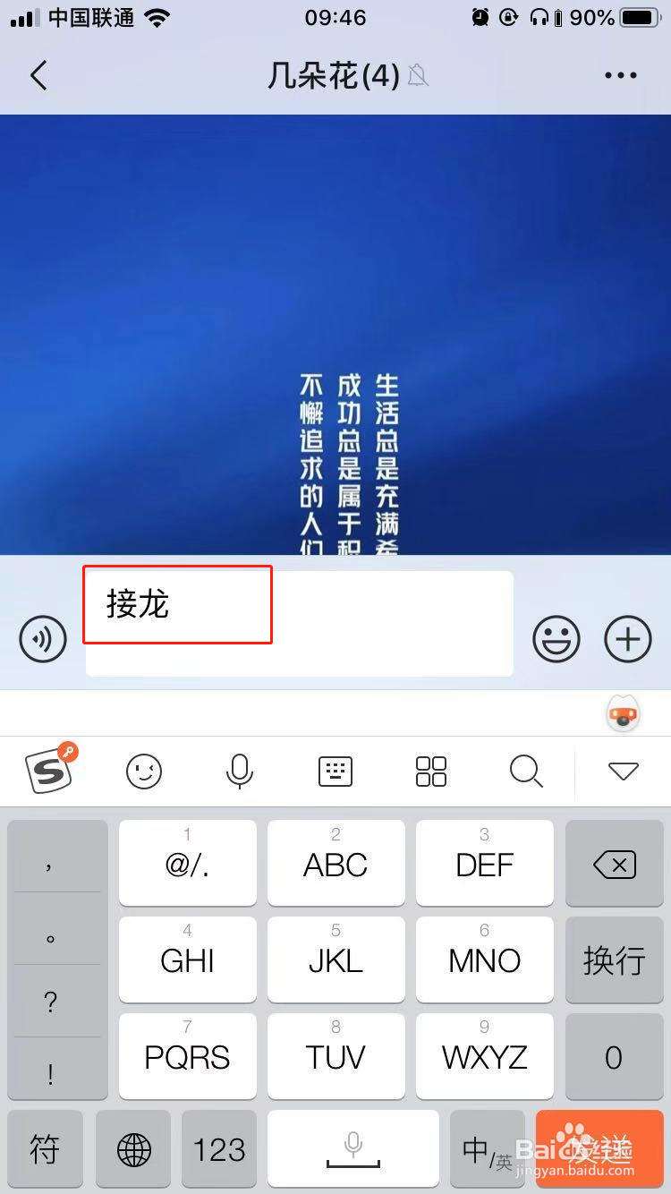 6、编辑接龙格式,编辑2-3个即可,最后点击【发送】完成,好友会在群聊消息中看到,参与游戏。