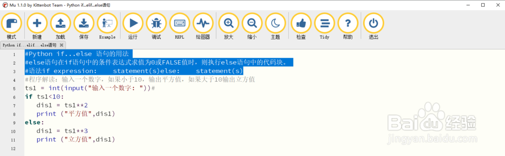 5、else:#如果大于10输出立方值