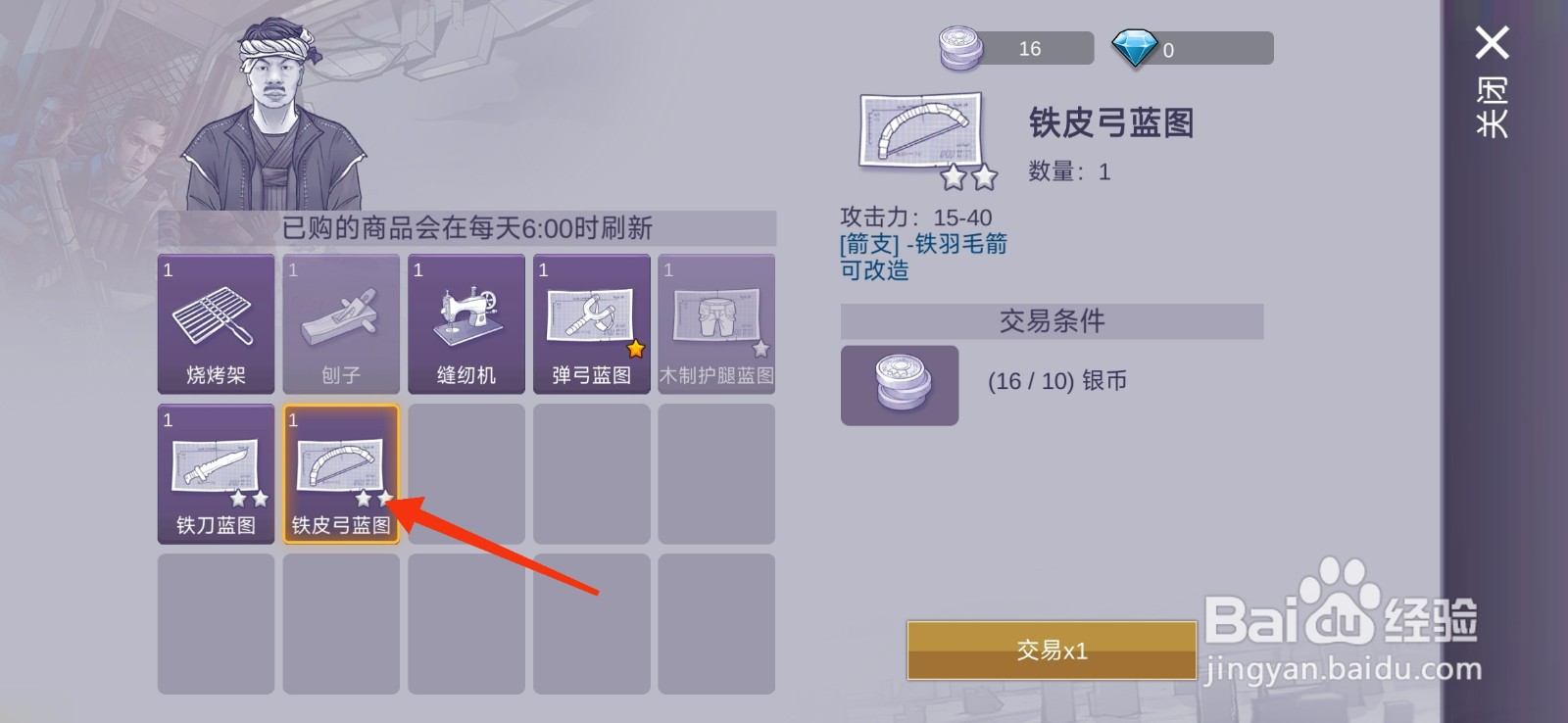 2、第二步:进入杂货店界面后,选择铁皮弓蓝图。