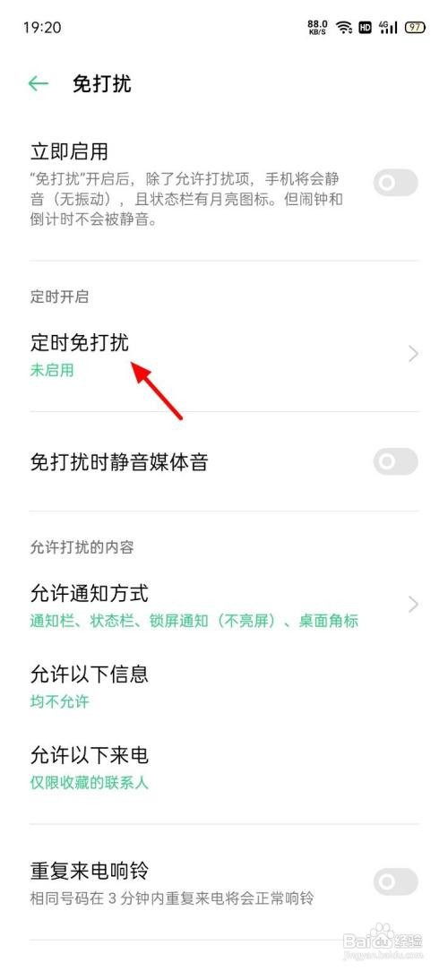 2、第二步:选择“定时免打扰”选项进入,如图所示。