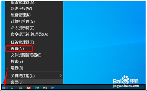 1、右键点击系统桌面左下角的【开始】,在开始菜单中点击【设置】;