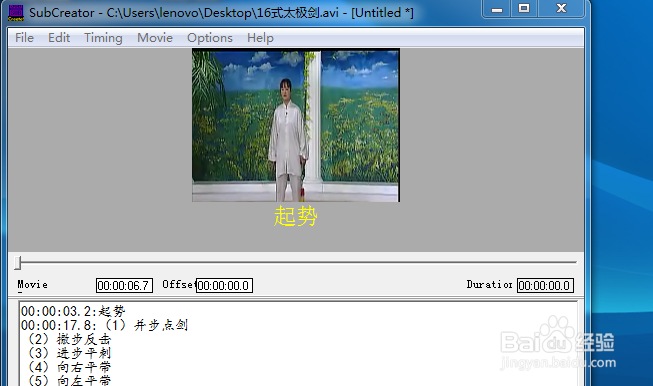 6、打开记事本,先把16式太极剑的动作名称字幕编辑好,备用。