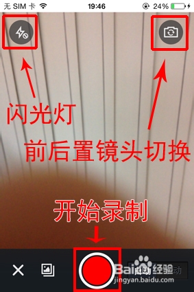 3、点击下方中央红色图标即可开始录制视频。