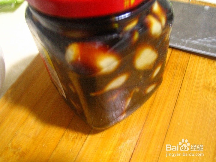 6、小吃陈醋蒜怎样做:1-备好一个大口的玻璃瓶,2-将要发芽的大蒜剥好选出好的蒜瓣,3-备好陈醋,4-将蒜瓣放入大口的玻璃瓶中在倒入陈醋盖上瓶盖。