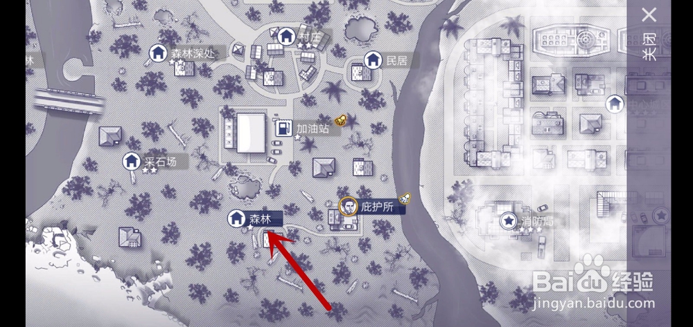 3、因为大家的加油站没有开启是不能传送的,我们先传送到离加油站最近的森林,如图所示。