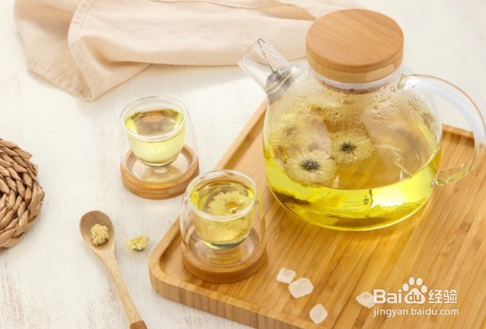 做法:将菊花放入水中煮沸,将榨汁的柠檬和绿豆沙注入菊花水中搅拌,放入少量蜂蜜即可饮用。