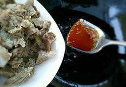 8、如图将冰糖炒化后变色即可加入牛肉翻炒均匀