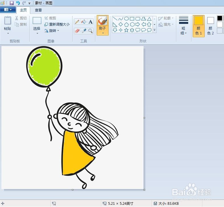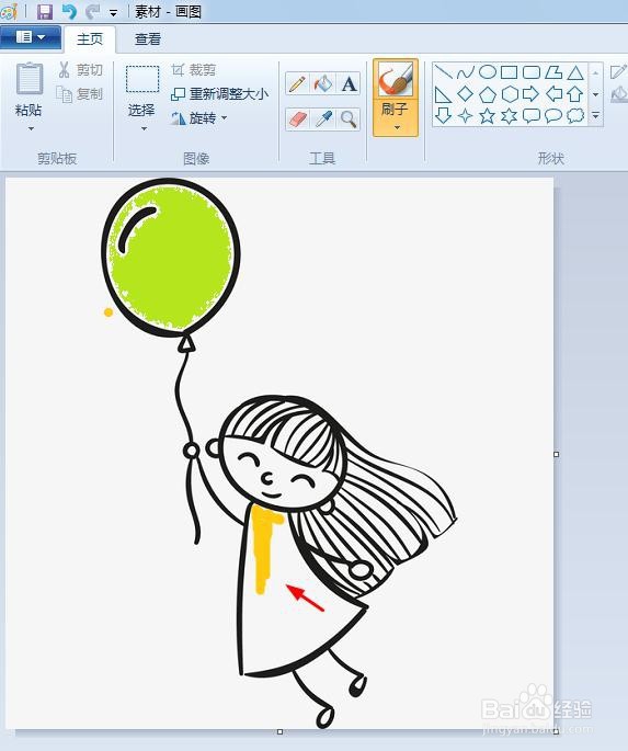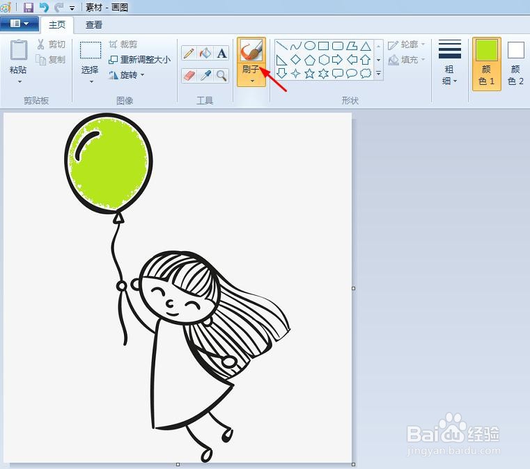 1、第一步:在画图工具的工具栏中,单击选择刷子工具。