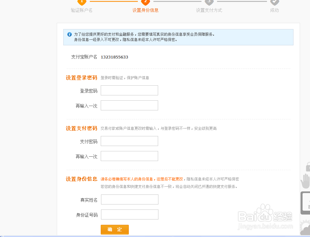 出现下图,再填写自己的身份信息,要真实,填完点击下面确定。