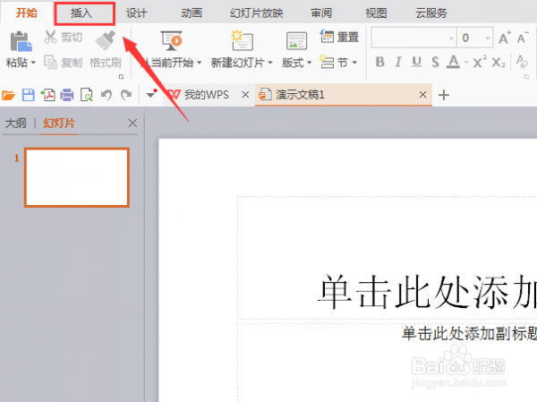 2、在该界面内找到插入选项,如图所示: