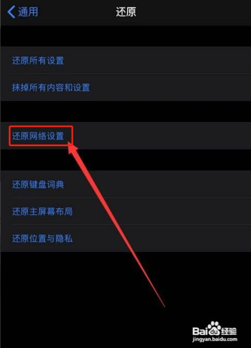 3、第三步,最后选择点击“还原网络设置”即可解决。如下图所示