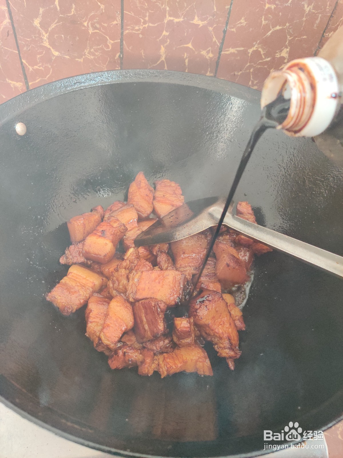 7、加入适量的糖提鲜,生抽老抽上色翻炒