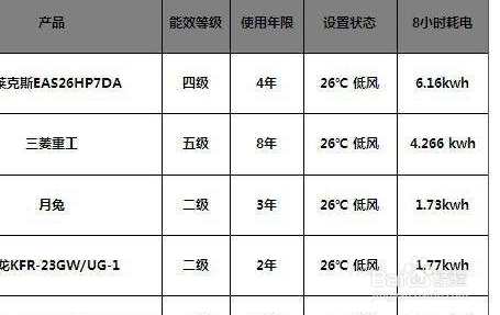 2、压缩机功率=制冷量/能耗比,一般空调能耗比大于3,因此1匹的电功率一般数据735W,1.5匹的 耗电功率就是735* 1.5约为1100瓦,也就是1小时1.1度电左右,除了压缩机,还有风扇或其他电机需要耗电,总共1小时也就1.2度左右。最简单的方法,看看说明书上的输入功率是多少千瓦,就是1小时的耗电量。