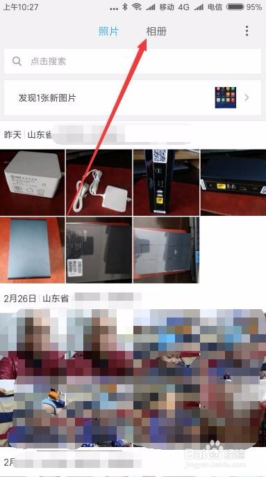 6、发果想要查看私密相册中的照片,只需要点击上面的“相册”选项卡