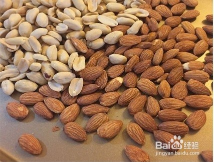 5、搅拌均后,关火,在将杏仁和花生倒入锅内搅拌均匀!
