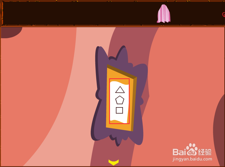 7、点击空白的画框,然后将白纸放入,使用蘸墨水的羽毛写下密码,三角形,五角形,四角形: