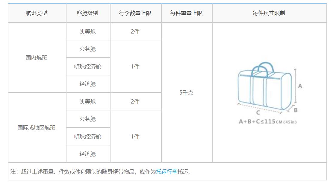 根据民航的通用规定,搭乘国内航班的每位旅客的免费行李额(包括托运和自理行李):