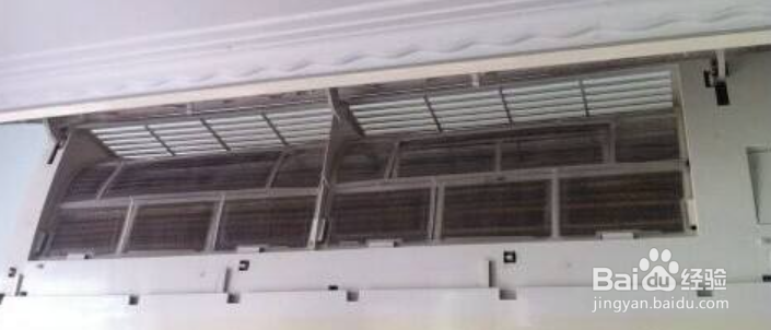 开启空调外盖后,里面往往还会有两个扣,还要轻轻的抠开才能让外盖完全打开