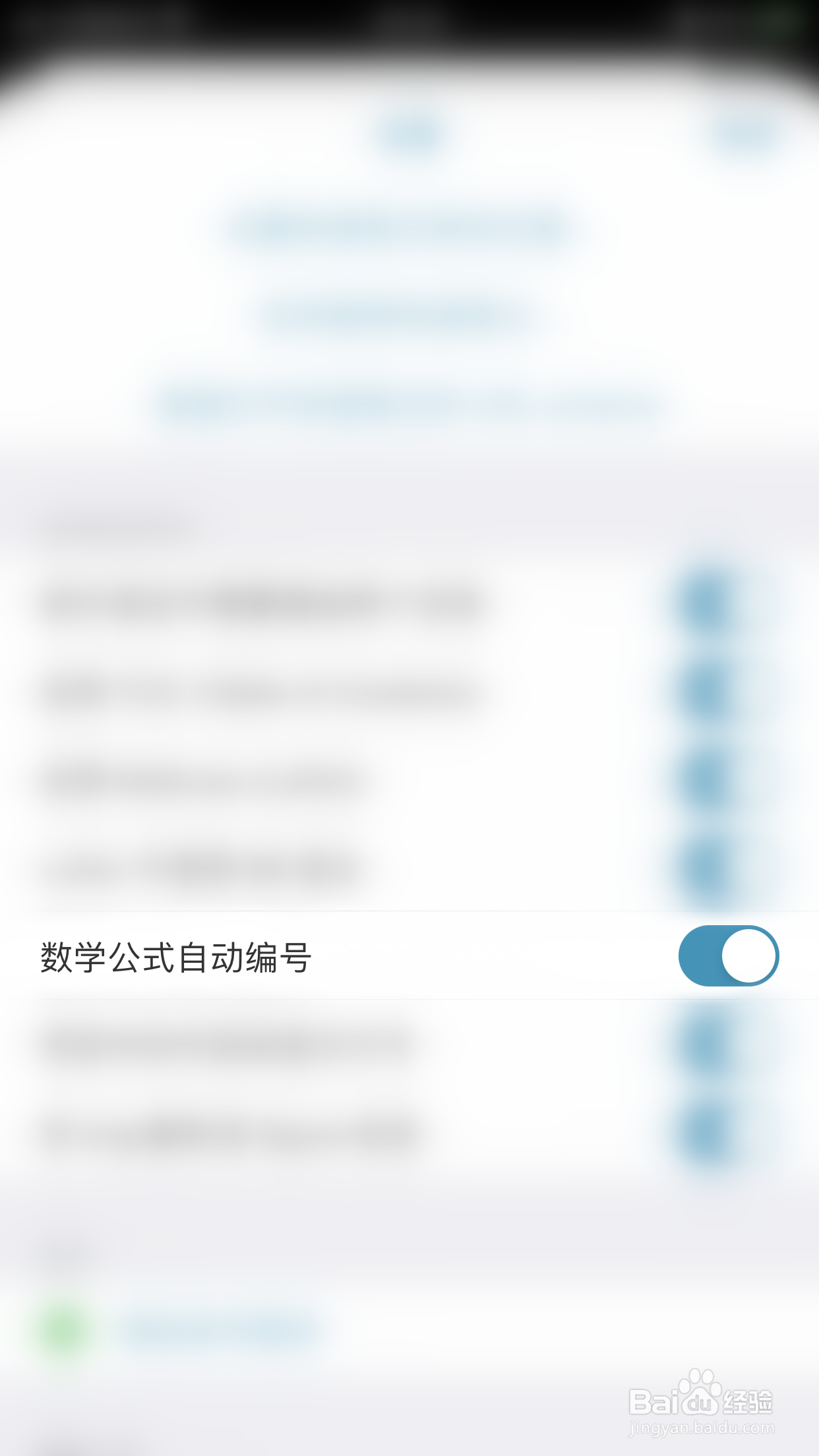 3、设置界面点击“数学公式自动编号”后面的圆点
