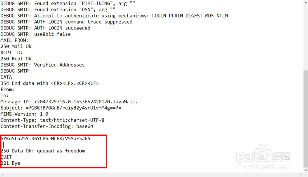 11、到此,邮件发送便完成了,在阿里服务器使用是将我们刚刚注释掉的4个配置启用,并将session.setDebug(true);更改为session.setDebug(false);即可。