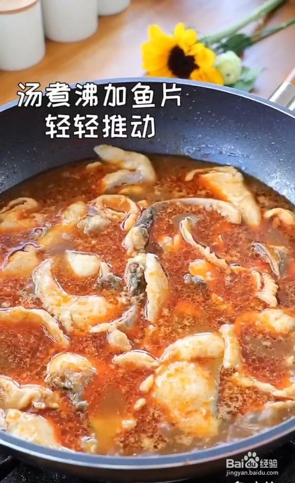 6、加入适量汤,葱花、蒜末、辣椒面,泼油即可