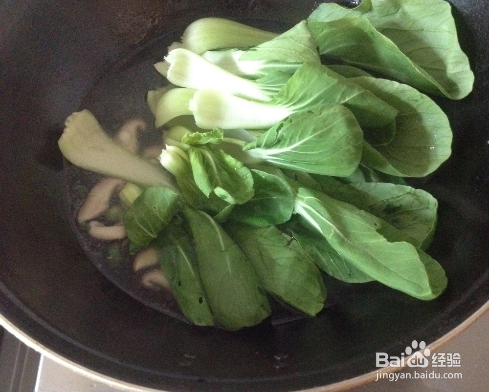 1、青菜摘好、洗净;香菇切片、小葱切段;