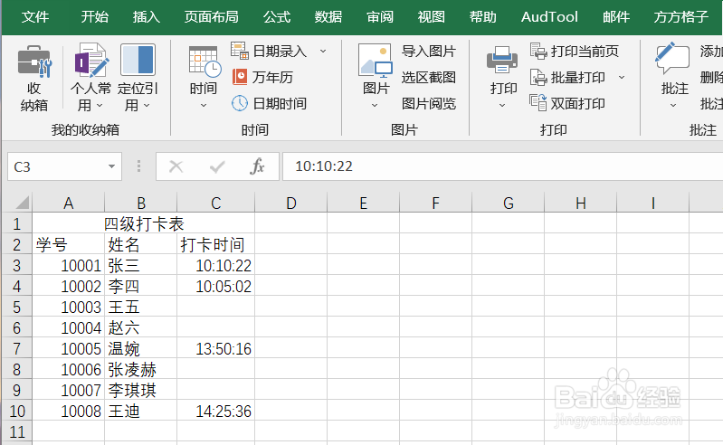 6、点击确定后,打卡时间列中非时间单元格就都被我们删除啦!