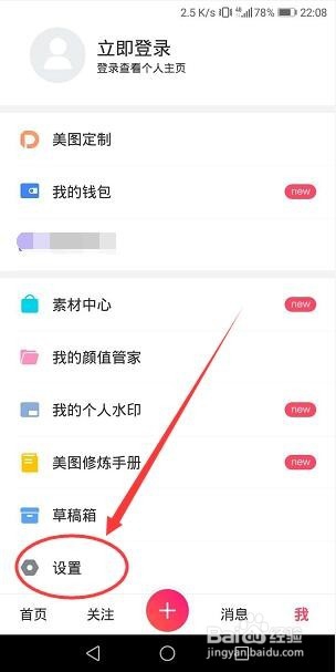 1、首先打开手机美图秀秀,进入到首页之后点开 我的 页面,如下图
