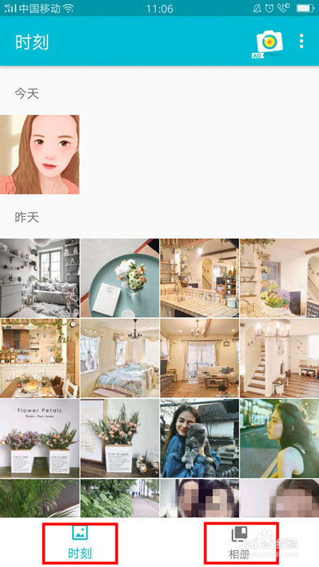 2、在“时刻”版块中,可以选择日视图、月视图、瀑布流视图等三种不同的形式呈现图片。其中,日视图即是以日期顺序排列图片,月视图即是以月份顺序排列图片,瀑布流视图即是以参差不齐的多栏布局呈现图片。