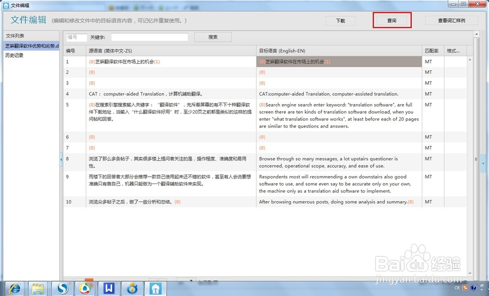 进入文件编辑,在目标语言内编辑认为编辑不准确的地方——>点击翻译记忆。