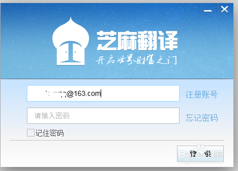 2、注册和登录芝麻翻译。使用邮箱注册,并用邮箱登录!
