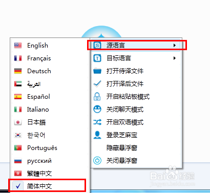 3、设置语言。任何操作,都需要设置源语言与和目标语言!