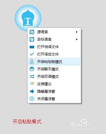 右键点击悬浮窗,选中“设置模式-开启粘贴板模式”。