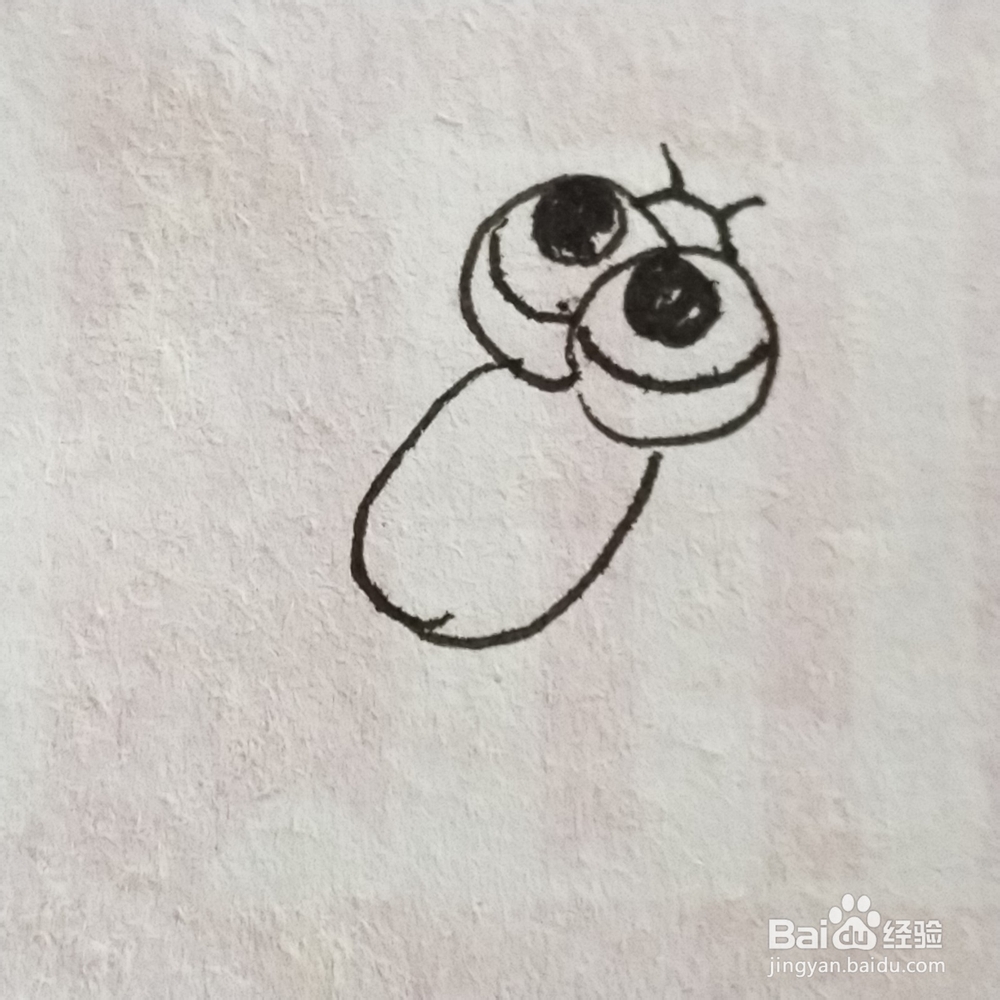 1、第一步先画出两只蜻蜓的眼睛,注意眼珠的朝向。