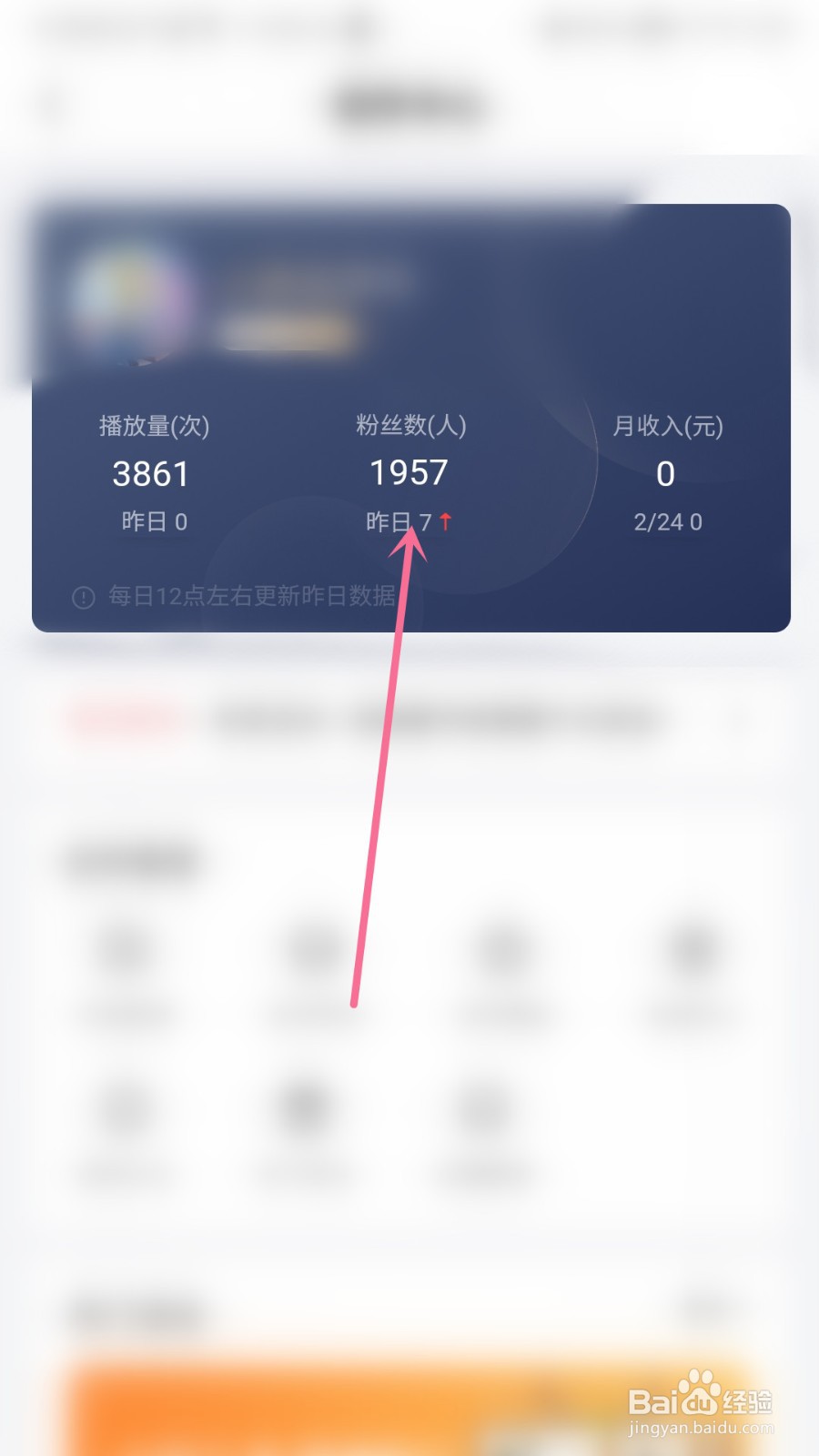 4、进入创作中心的页面就可以“看到粉丝的人数”。