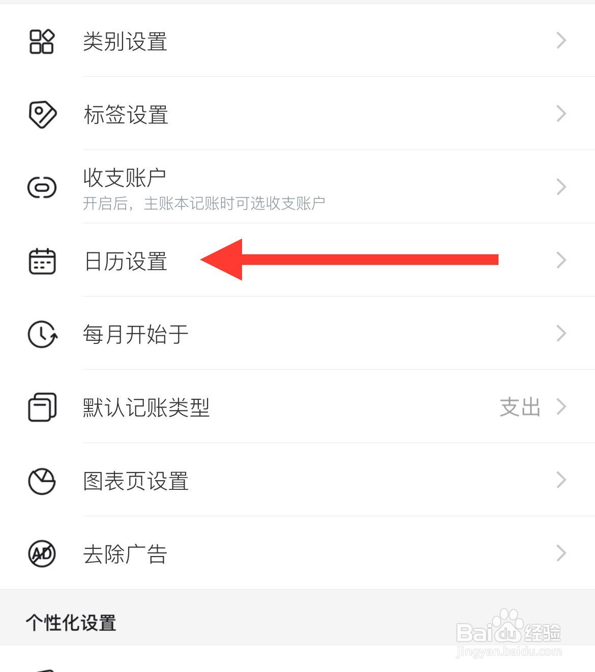 3、最后:在设置界面中选择【日历设置】选项点击进行完成设置即可。