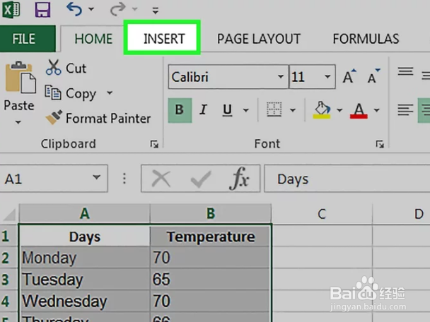 2、点击插入选项卡。它位于Excel窗口的顶部、开始选项卡的右侧。