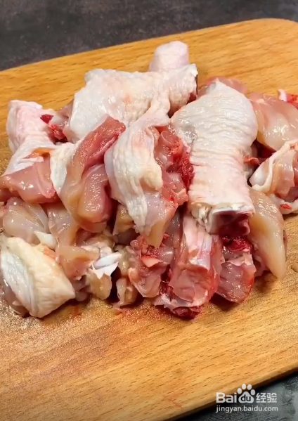1、将洗净的鸡腿切块,冷水下入锅中加陕久够入一勺料酒去腥,煮出血沫后捞出控干水分备用。