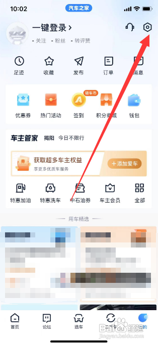 1、第一步:打开汽车之家App我的页面,点击【设置】图标,如图所示。