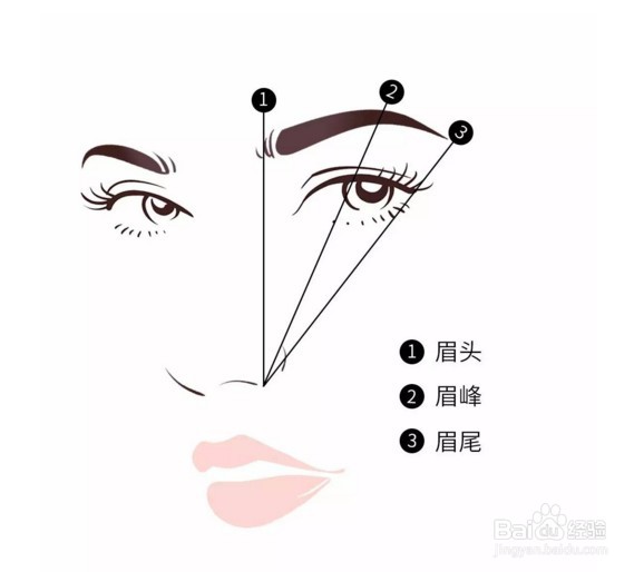 2、如何画出适合的美型,今天是教新手宝宝采用定点画眉。这个方法是最安全的画眉毛的方法,并且能快速的找到眉头、眉峰、眉尾的位置。