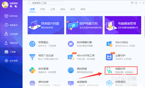 7、以上方法,也可以重启路由器,如果还不能解决,打开电脑安装的管家软件。找到电脑诊所功能。