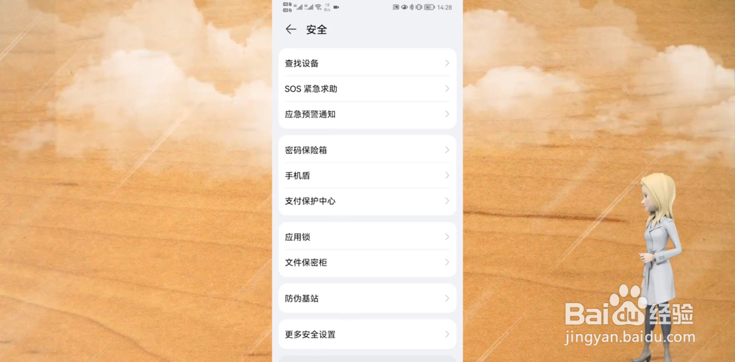 在华为的设置恩胆新中,找到安全选项,点击它进入新界面。